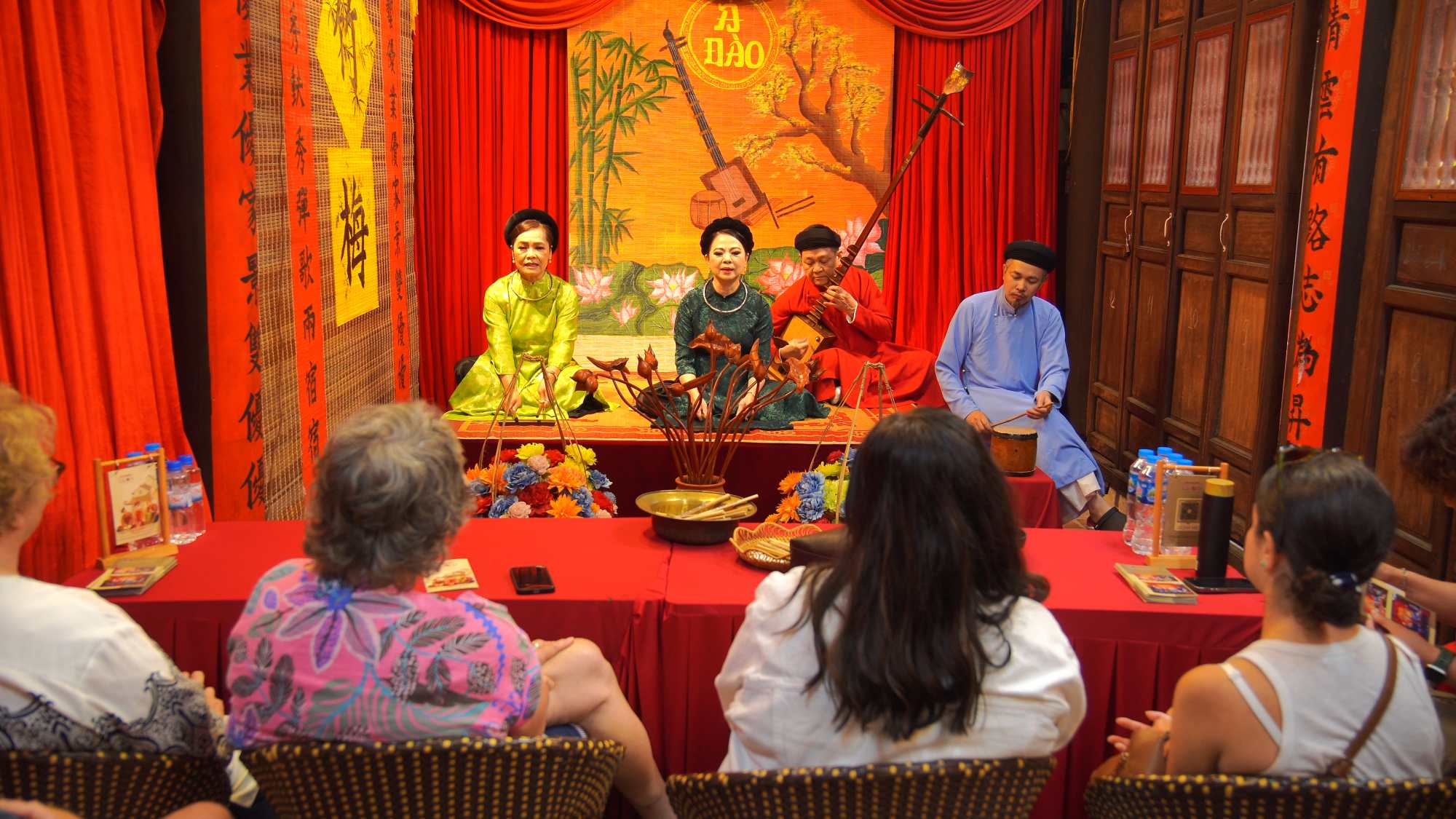 Không gian diễn xướng đặc thù. Ca trù tồn tại trong những không gian riêng: đình, đền, phủ, hay “ca quán” xưa – nơi giao lưu của trí thức, văn nhân. Chính không gian ấy tạo nên một văn hóa thưởng thức tinh tế, khác biệt với các loại hình biểu diễn đại chúng.
